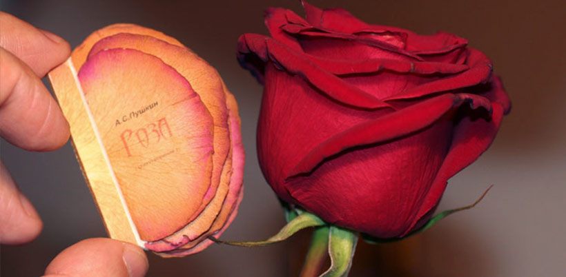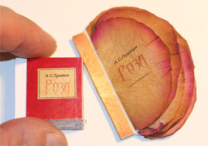 Özboluşly mikro miniatýura sungaty esasynda döreden eserleri bilen meşhurlyk gazanan tanymal suratkeş we binagär A.Konenko rus şahyry A.S. Puşkiniň goşgularyny gysga göwrümde döretdi. Bu mikro kitap 30×32 mm ululykda bolup, täsin ýeri-de bu ýygyndy 37 sany gül ýapragyndan döredilen. Ony döretmek üçin we gülleriň uzak saklanmagyny gazanmak üçin bir ýyl töweregi wagt gerek boldy. Teksti girizmek üçin ilki bilen ýazgylar gül ýapraklaryna girizilýär, soňra näzijek gül ýapraklary ýörite himiki birleşme bilen işlenilýär. Netijede döredilen miniatýura eseri uzak wagtlap saklanmaga ýaramly bolýar.