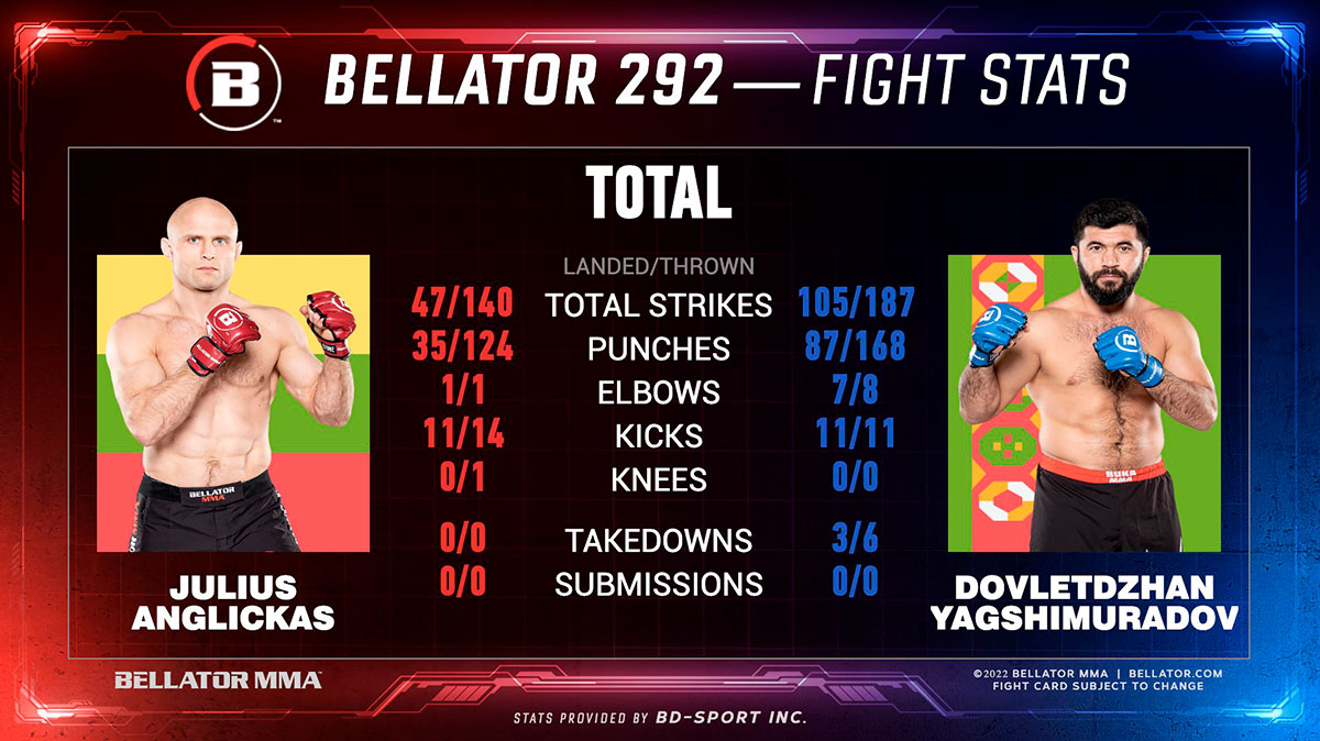 33 ýaşly garyşyk görnüşli göreş boýunça türkmen pälwany Döwletjan Ýagşymyradow «Bellator 292» ýaryşynyň çäginde ýarym agyr agram derejesinde litwaly Julius Englikasy ýeňdi. Bu göreş ABŞ-nyň Kaliforniýa ştatynyň San-Hose şäherinde deslapky kardanyň çäginde geçirildi.