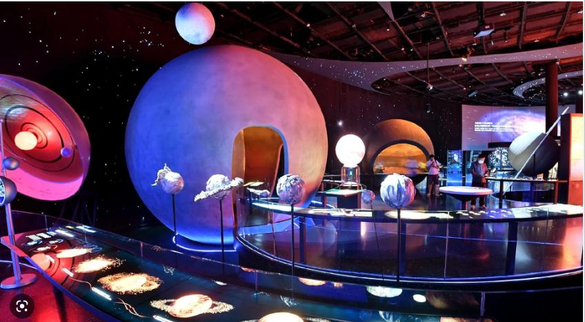 Ýygyndyda Isak Nýutonyň, Nikolaý Kopernigiň, Galileo Galileýiň we başga-da birnäçe barlag geçirijileriň özboluşly eserleri ýerleşdirilipdir. Üsti ýetirilen hakykat, maglumatlary wizuallaşdyrmak, emeli aň we biometrika ýaly tehnologiýalar planetariniň bilim maksatnamalarynda giňden ulanylar. Daşky görnüşi boýunça planetariý fantastik filmlerdäki uly kosmos gämisine meňzeýär. Şeýle-de baş binanyň töweregindäki ýanýodalar galaktiki spiral şekilinde taslanypdyr. Planetariniň gurluşygynda ýaşyl tehnologiýalaryň we ekologiýa taýdan arassa materiallaryň iň soňky gazananlary ulanylypdyr.