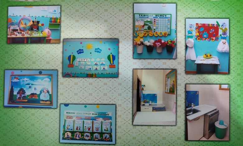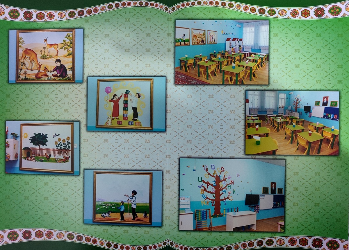 | Şol sanda toparyň girelgesinde ata-eneler üçin diwarlyk, Saglyknama diwarlygy, “Baýramçylyklar” atly diwarlyk, “Mekdebe çenli Döwlet bilim standarty” atly diwarlyk öz ornuny eýeleýär. Şeýle-de topar otagynyň girelgesinde “Bedenterbiýe”, “Zähmet“, “Biziň işimiz” atly burçlar döredilip, olar degişli esbaplar bilen hil we mazmun taýdan talabalaýyk enjamlaşdyrylýar.